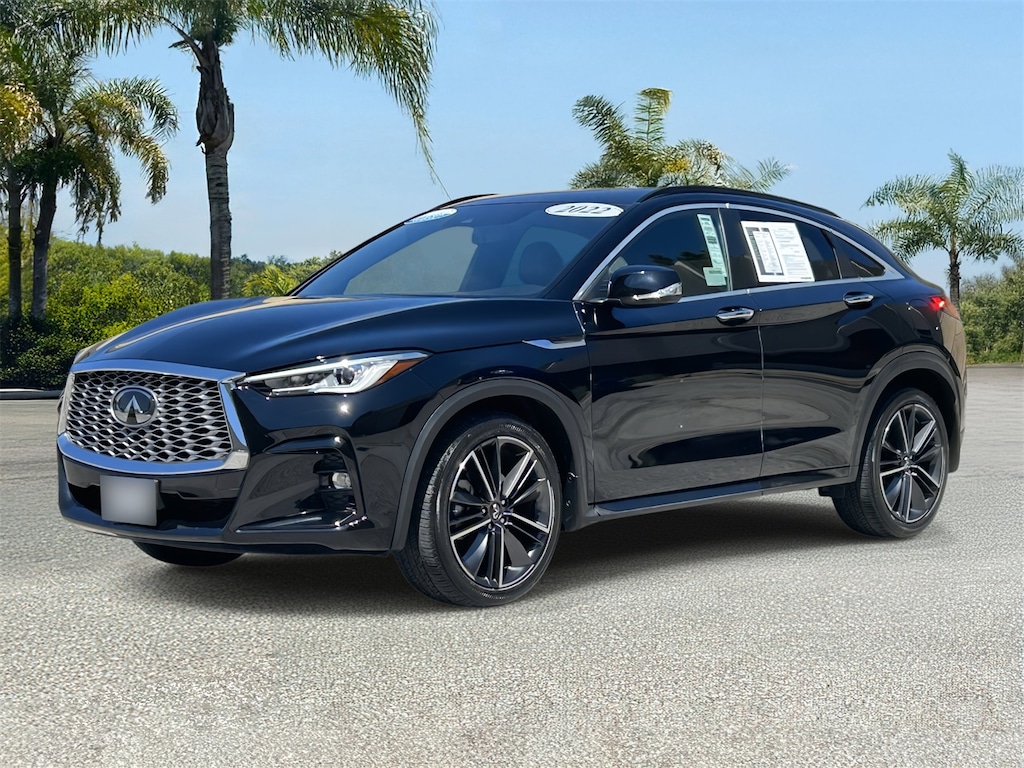 Experience the 2022 INFINITI QX55 LUXE: Where Sophistication Meets Performance in a Striking Black Obsidian Sport Utility Vehicle