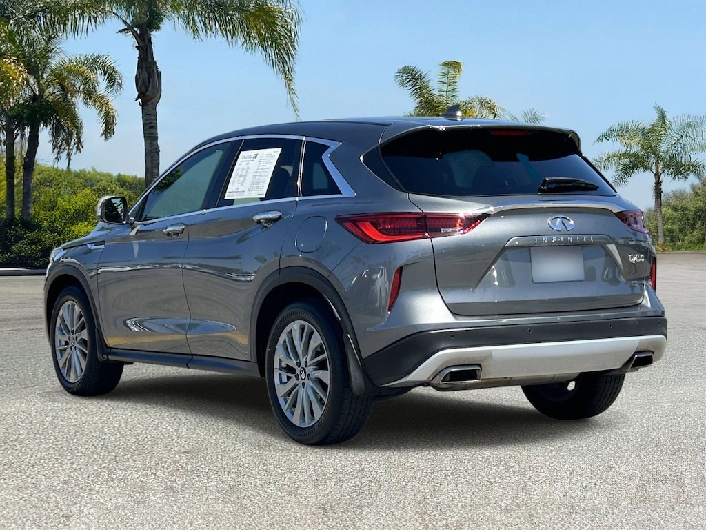 This sophisticated SUV boasts a turbocharged 4-cylinder engine paired with a smooth CVT transmission, delivering responsive power and impressive fuel efficiency for city streets and open highways alike. Front-wheel drive and brake-actuated limited-slip differential provide enhanced control, making every drive secure and engaging. Inside, premium synthetic bucket seats with power adjustments and driver lumbar support ensure comfort tailored to your needs, while the pass-through rear seat adds versatility for your lifestyle. Safety is paramount with advanced features such as blind spot monitoring, lane departure warning, front and rear collision mitigation, and adaptive cruise control, all working seamlessly to keep you protected and confident. The cabin is equipped with smart device integration, Bluetooth connectivity, and a WiFi hotspot, keeping you connected and entertained on the go. Convenience is elevated by the power liftgate, remote engine start, and auto-dimming rearview mirror. Aluminum wheels with performance tires and a sleek rear spoiler complete the QX50’s dynamic presence, reflecting a driver who values both form and function. This INFINITI QX50 PURE is ready to meet your daily demands with style and sophistication.