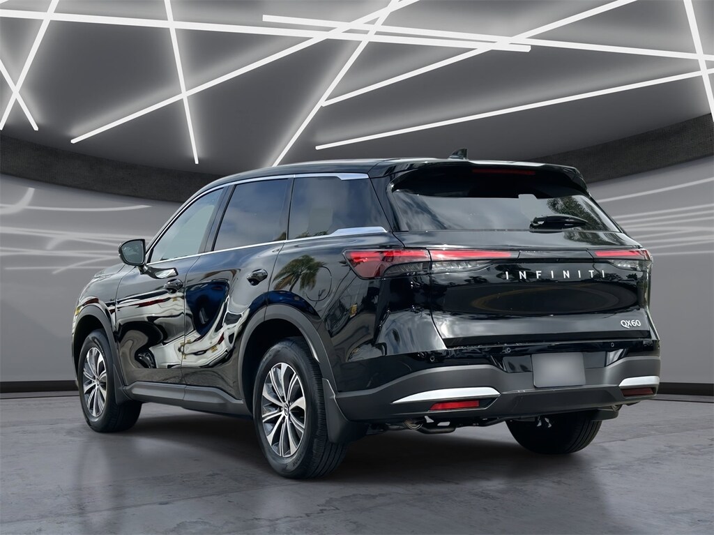 Step into the 2026 INFINITI QX60 PURE and discover a world where sophistication and technology seamlessly blend. This SUV is crafted for those who demand more from their drive. Its sleek Black Obsidian exterior is complemented by a panoramic roof, inviting you to explore new horizons. Inside, the QX60 PURE offers a sanctuary of comfort with premium synthetic seats, heated front seats, and a power-adjustable driver's seat with lumbar support, ensuring every journey is a pleasure. The advanced safety suite, including Blind Spot Monitor and Lane Departure Warning, provides peace of mind, while the Rear Collision Mitigation system keeps you protected from unexpected surprises. Stay connected with the intuitive navigation system and enjoy your favorite tunes through the Bluetooth-enabled audio system. The 9-speed automatic transmission and turbocharged 4-cylinder engine deliver a smooth yet exhilarating drive, perfect for navigating city streets or open highways. With the INFINITI QX60 PURE, every drive is an opportunity to indulge in luxury and innovation, making it the ideal choice for those who appreciate the finer things in life.